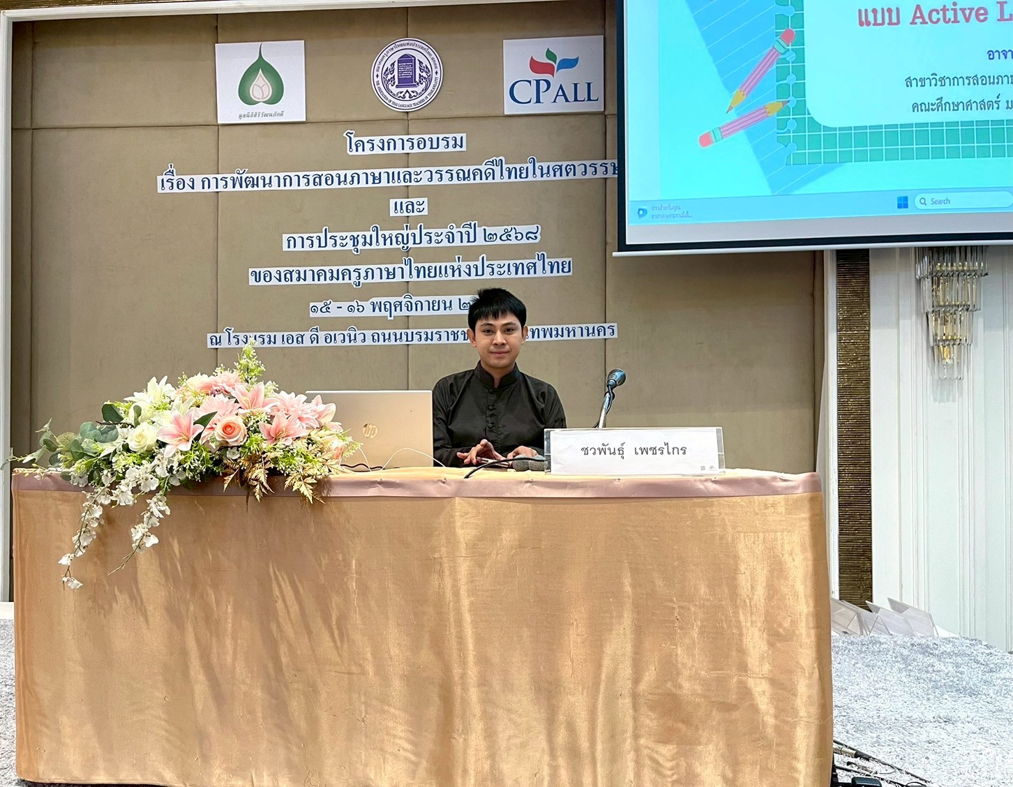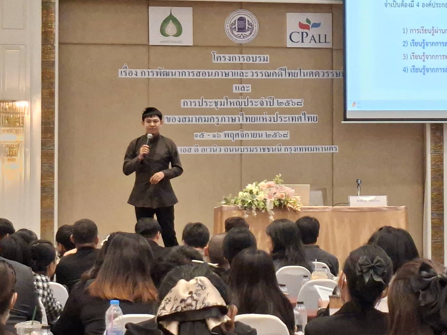 การอบรมเชิงปฏิบัติการเรื่อง “การพัฒนาการสอนภาษาและวรรณคดีไทยในศตวรรษที่ ๒๑” จัดโดยสมาคมครูภาษาไทยเเห่งประเทศไทย วันเสาร์ที่ ๑๕ พฤศจิกายน พ.ศ. ๒๕๖๘ (วันที่ ๑) ณ โรงเเรมเอ ดี อเวนิว กรุงเทพฯ กิจกรรมในวันเเรกนี้ ผู้เข้าอบรมได้เเลกเปลี่ยนเรียนรู้เกี่ยวกับความรู้เรื่อง AI ที่ครูภาษาไทยควรรู้ เทคนิคการเเต่งคำประพันธ์ตามกระบวนการคิดออกเเบบ เเละกลยุทธ์การทำเเผนการจัดการเรียนรู้ภาษาเเละวรรณคดีเเบบเชิงรุก ซึ่งจะเป็นเเนวทางในการพัฒนาการสอนภาษาไทยในชั้นเรียนต่อไป