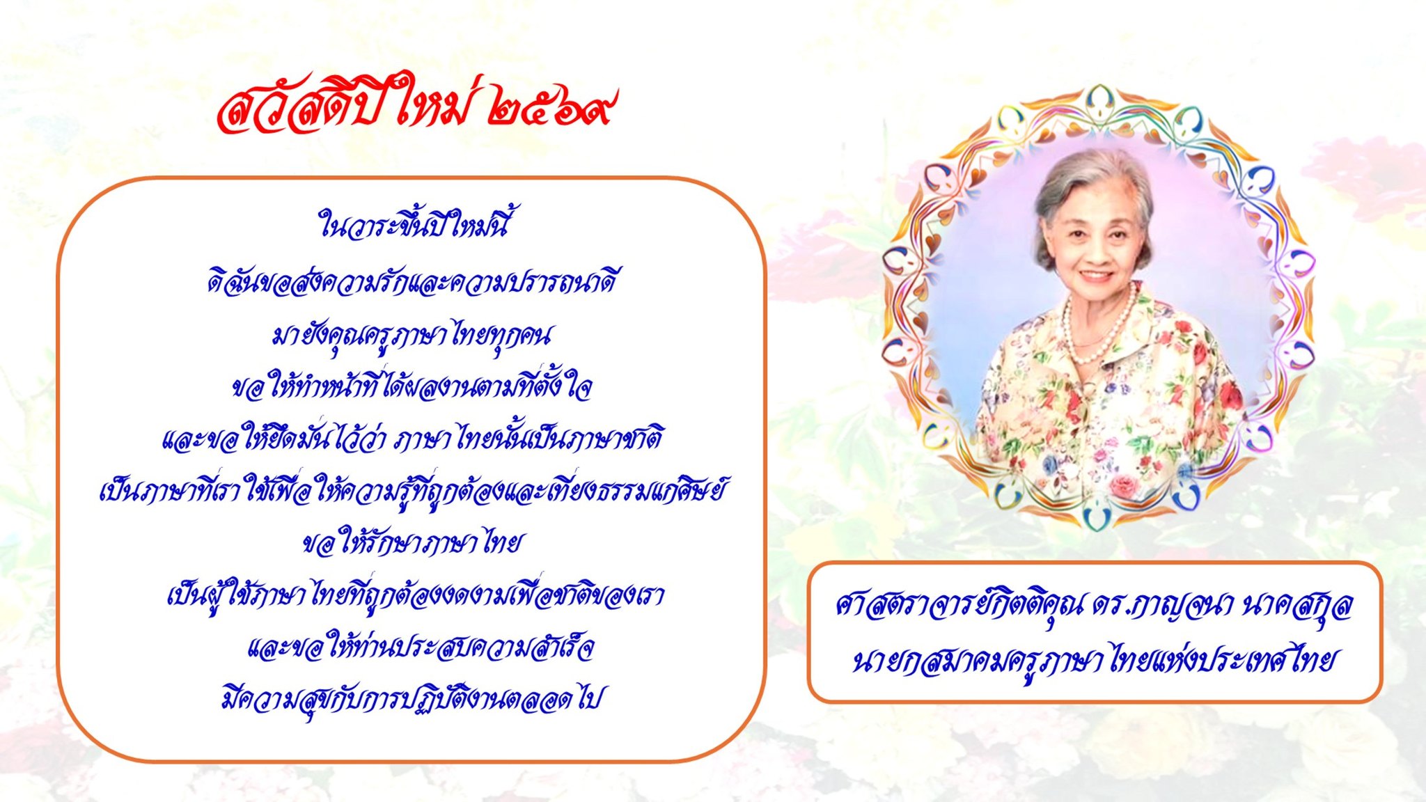 สารจากนายกสมาคมครูภาษาไทยแห่งประเทศไทย ในโอกาสวันขึ้นปีใหม่ พุทธศักราช ๒๕๖๙